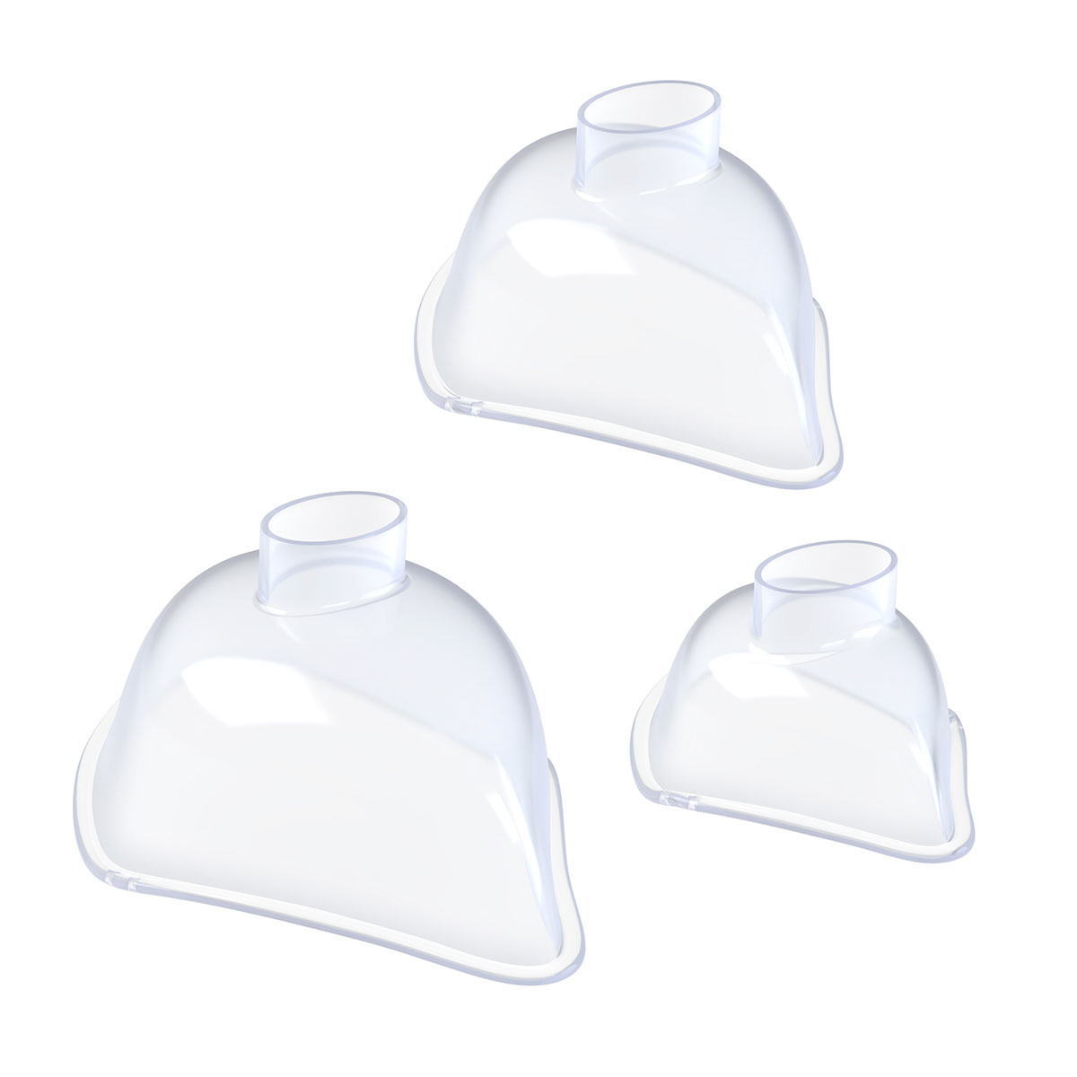 Conteúdo da Embalagem: 01 bico-boquilha, 01 câmara espaçadora, 01 adaptador com encaixe universal, 01 membrana de silicone, 01 prolongador da câmara, 01 máscaras adulto, 01 máscaras adolescente, 01 máscaras bebê-infantil, 01 manual de instruções.
