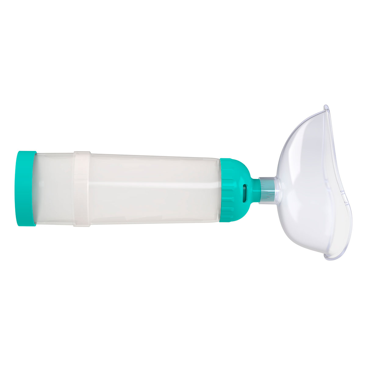 O Espaçador diminui a velocidade do jato de medicação e alinha as partículas que saem do aerossol (bombinha), o que torna a inalação eficiente. Facilita a coordenação respiratória e aumenta a deposição do medicamento nos pulmões. Diminui a perda da medicação na boca e a incidência de efeitos colaterais, promovendo melhores resultados no tratamento.